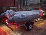 • Тент с утягивающей стропой под дном лодки и дополнительными стропами крепления к прицепу по периметру
